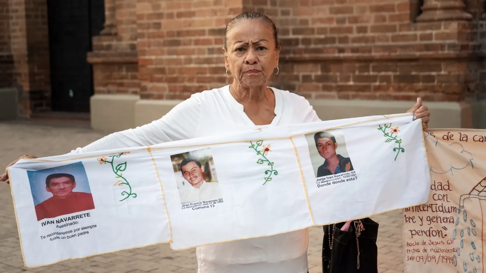 “Nos hemos cansado, pero no nos rendimos… buscamos mientras caminamos, mientras dormimos, buscamos donde nadie buscaría… hemos seguido huellas, rastros de sangre, seguimos noticias, pistas que llevan de un lugar a otro, de una ciudad a otra, de la desesperanza a la esperanza y a veces otra vez a la desesperanza, la desaparición es un duelo congelado en el tiempo…. Hemos buscado en caminos, en trochas, en ríos, en cementerios, en montes, en caseríos, en donde rondan las aves carroñeras, en playas y montañas…hemos buscado en los rostros de cada uno de ustedes, en la calle, buscamos mientras respiramos y algunas veces perdemos el aliento mientras buscamos, nos han guiado los sueños, la fe, las mayoras, los brujos y sanadores…hemos escarbado con nuestras propias manos, hemos excavado fosas, hemos revolcado cementerios… Ellos, ellos también nos buscan-.” (Comisión de la Verdad, Reconocemos su búsqueda, Canal de YouTube, minuto 44)