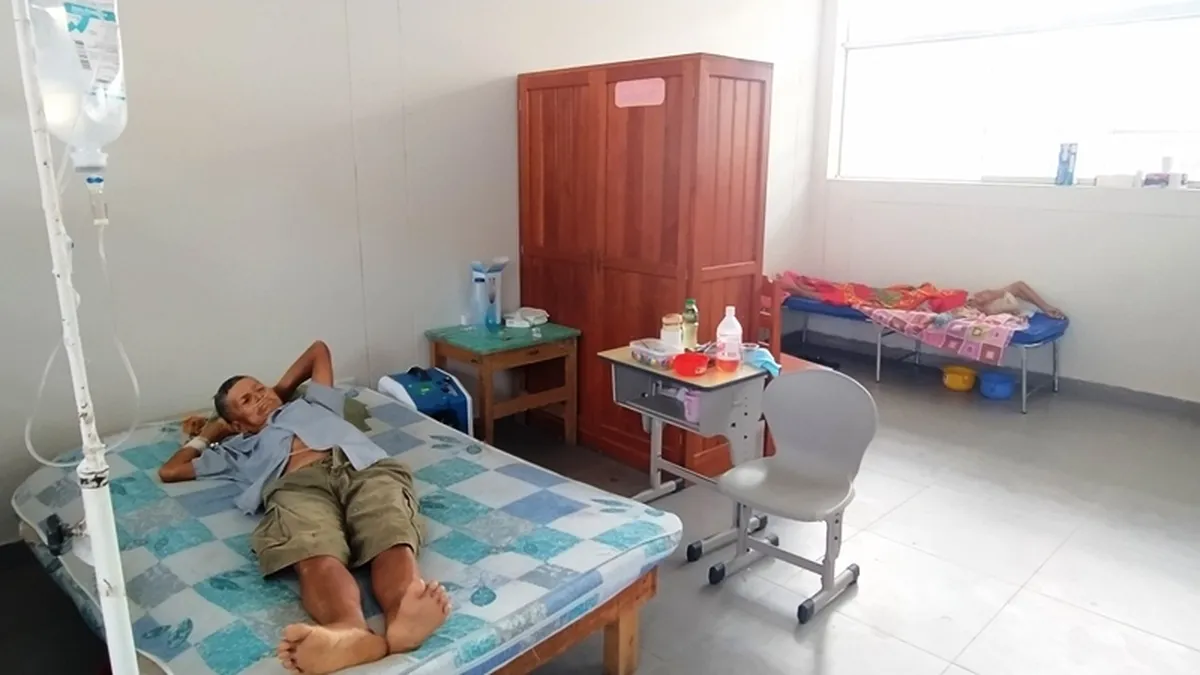 Los salones (aulas) hacen de improvisados boxes de aislamiento, y en cada uno hay dos o tres enfermos; la parroquia prestó camarotes (literas) hace ya muchos meses. Proceden de Indiana misma y de varias comunidades. Están clasificados por zonas; los más graves, cerca de la entrada, son los que llegan con la saturación muy baja o además presentan alguna patología concomitante. Allí están don Luis, doña Natividad y don Antonio, todos pasando los 80 años.