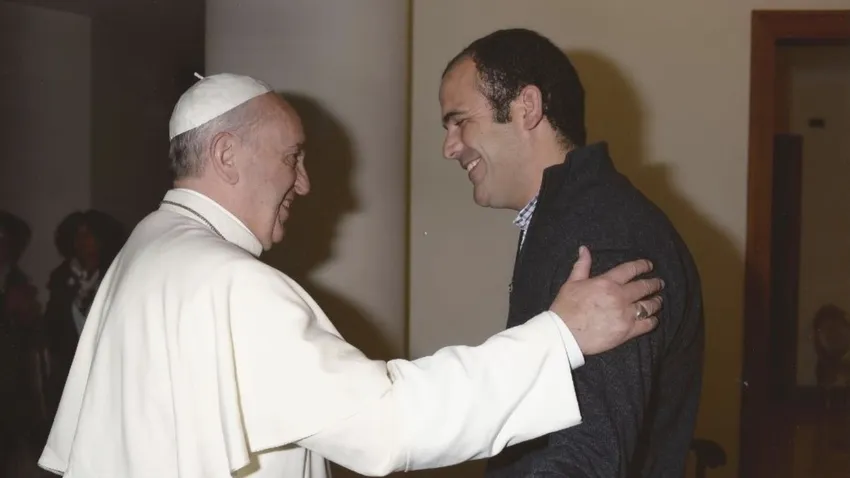 Una iglesia normal, una capilla, yo me senté medio atrás; bastante atrás, no quería, tampoco en la misma línea; quería nada más participar de la misa, así que estuve en la misa. Cuando terminó la misa yo me quedé rezando ahí y estaba con los ojos cerrados rezando y cuando abrí los ojos, en ese momento veo que lo tengo sentado al lado, rezando ahí. Así que te imaginarás, me quedé petrificado, pero él se rio, se paró y se fue y se puso a saludar afuera a todos los que salían. Así que yo me quedé ahí esperando. Y cuando lo saludo me dice hola Nacho, ¿qué hacés? ¿Cómo estás? Y le digo, mirá, la verdad que no sabía si venir porque no te quería comprometer y me dice, no seas tonto, me dice, a mí me encanta recibirlos; me hace mucho bien, así que siempre que vengas a Roma pasa a visitarme.