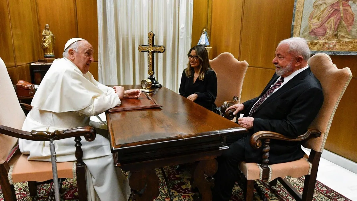 El pontífice y el mandatario se encontraron esta tarde en la denominada "Auletta" del Aula Pablo VI, un gran complejo de salas del Vaticano a pocos metros de la residencia papal de Casa Santa Marta, a la que Lula llegó acompañado por su esposa Rosangela “Janja” da Silva y una nutrida delegación.