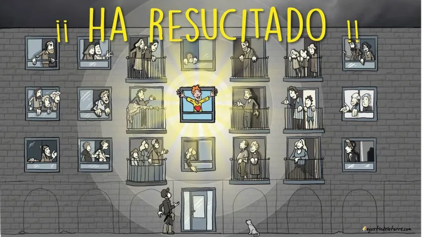 La muerte y la resurrección de Jesús de algún modo tuvieron lugar a lo largo de su existencia. Cuando curaba enfermos, cuando compartía con los pobres, cuando manifestaba esa compasión solidaria ante los excluidos, cuando lamentaba la cerrazón egoísta de los arrogantes, Jesús era el hombre para los demás y en su conducta el Dios de la vida pasaba venciendo a la muerte. No dudo de que en la entrega por amor gratuito de tantas personas tratando de atender a los más débiles y de buscar el bien para todos, arriesgando incluso la propia vida, ya estamos resucitando, en camino hacia esa plenitud de de vida sin muerte. Que sigamos siempre ese camino. Me gusta esa canción: “Alegría, hermanos, que si hoy nos amamos es que resucitó”.