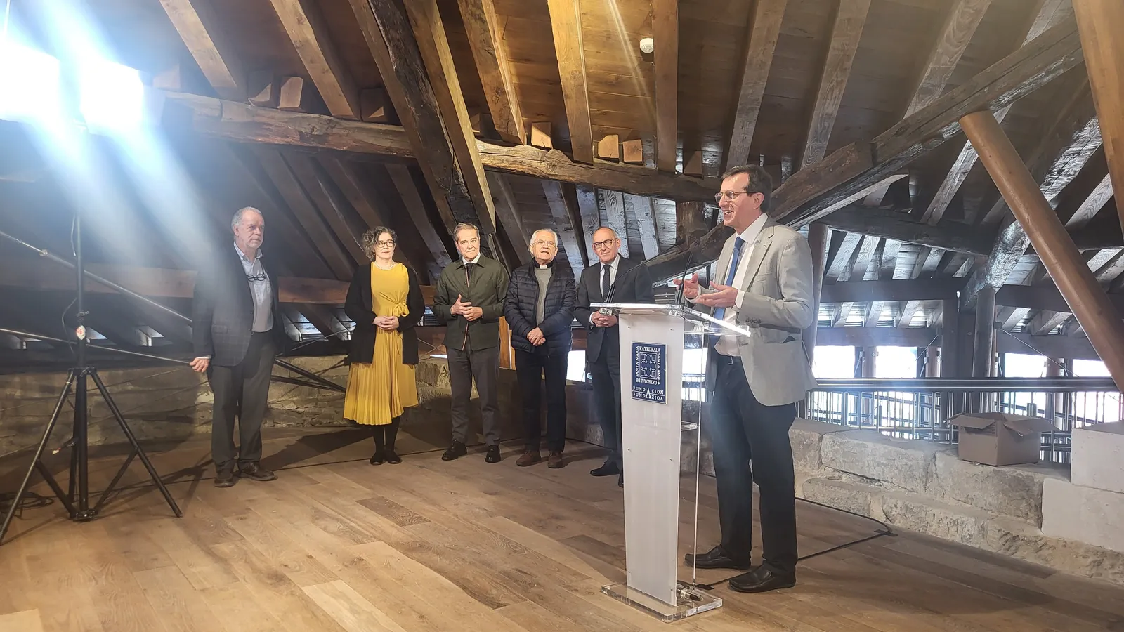 Al acto, que ha tenido como anfitrión al gerente de la Fundación, Jon Lasa, han acudido Ramiro González, Diputado General de Álava; Andoni Iturbe, Viceconsejero de Cultura del Gobierno Vasco; Urkiri Salaberria, Directora de Patrimonio Cultural de Gobierno Vasco; Sonia Díaz de Corcuera, Concejala de Cultura del Ayuntamiento de Vitoria-Gasteiz; y Carlos García Llata, Vicario General de la diócesis de Vitoria. La visita ha contado con un guía de excepción, Leandro Cámara, arquitecto desde 1997 de las obras realizadas en la Catedral de Santa María.